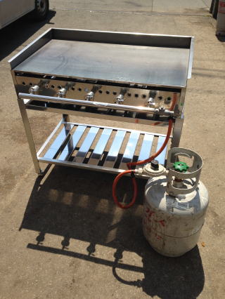 台付特大鉄板焼きセット一式付属品 鉄板台(900mmX550mm)1台・ヘラ1枚・トング1ケ (ガス・配送費は別途です) 在庫 お問い合わせ下さい。 重量物の為、運搬範囲に制限があります。 (エレベーターの無いビルの屋上・運搬車が入れない場所等) 詳しくはお問い合わせ下さい。 この商品は店頭より15km以内を想定しております。 店頭や現場よりガスを車載で移動する場合は、 10kgボンベ以下・総量20kg以下、店頭より半径15km以内の法定制限があります。 上記を超えて車載移動した場合、 防災工具や消火器・許可証がない無許可車両は取締の対象となります。 運送費の目安
